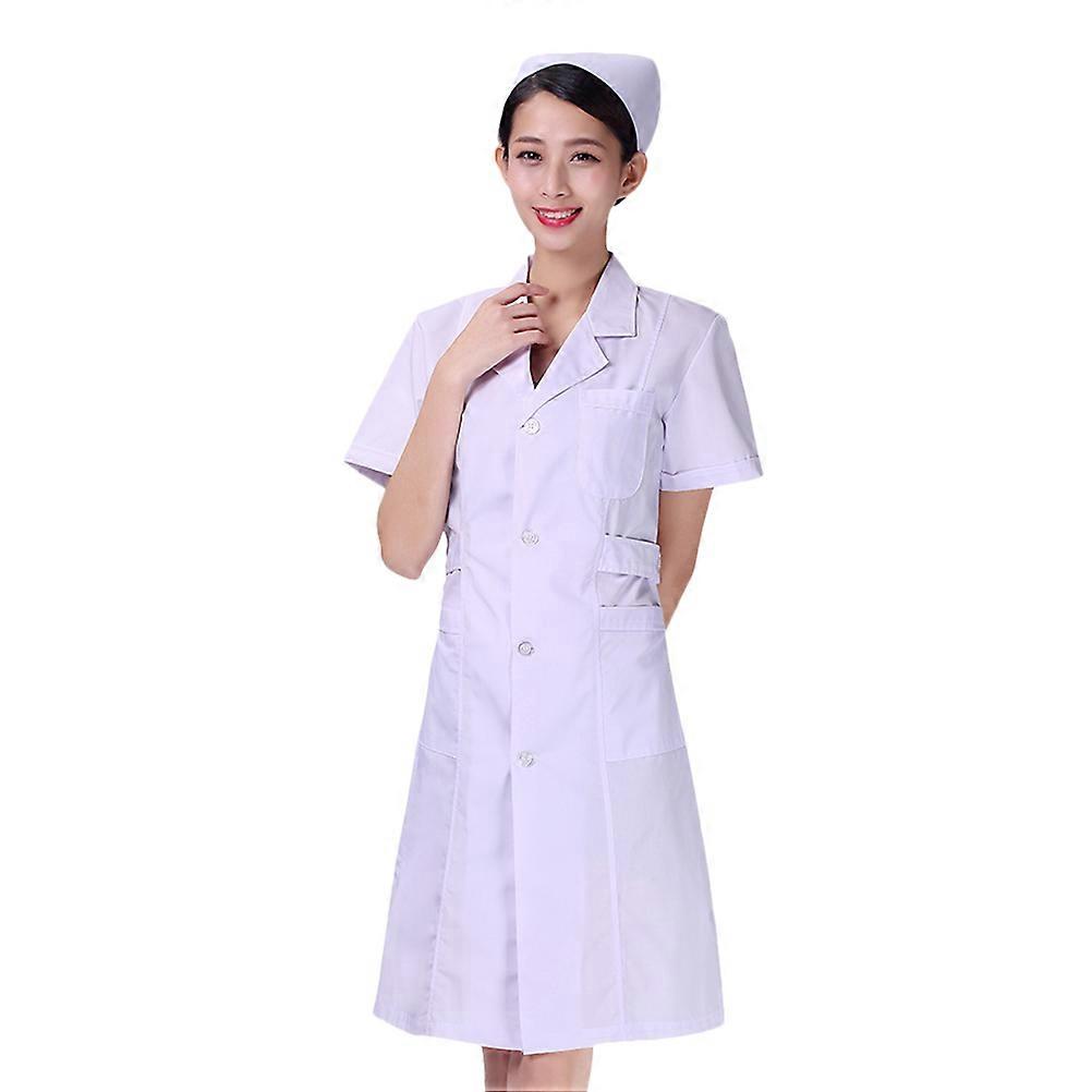 White Short Sleeve Uniform Beautician Nursing White Coat Cotton Hospital Apparel Clothes V Neck Labour Suit Fashion Costume Pharmacy Coat Without Hat
