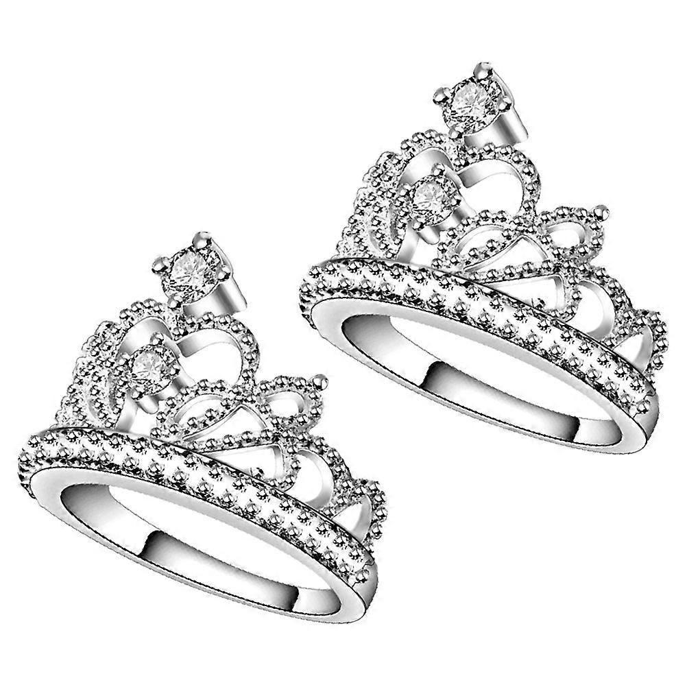 Cupronickel Crown Shaped Zircon Inlaid Ring For Women Elegant Jewelry Daily Wear 1.60X1.60X1.20CM 2Pcs