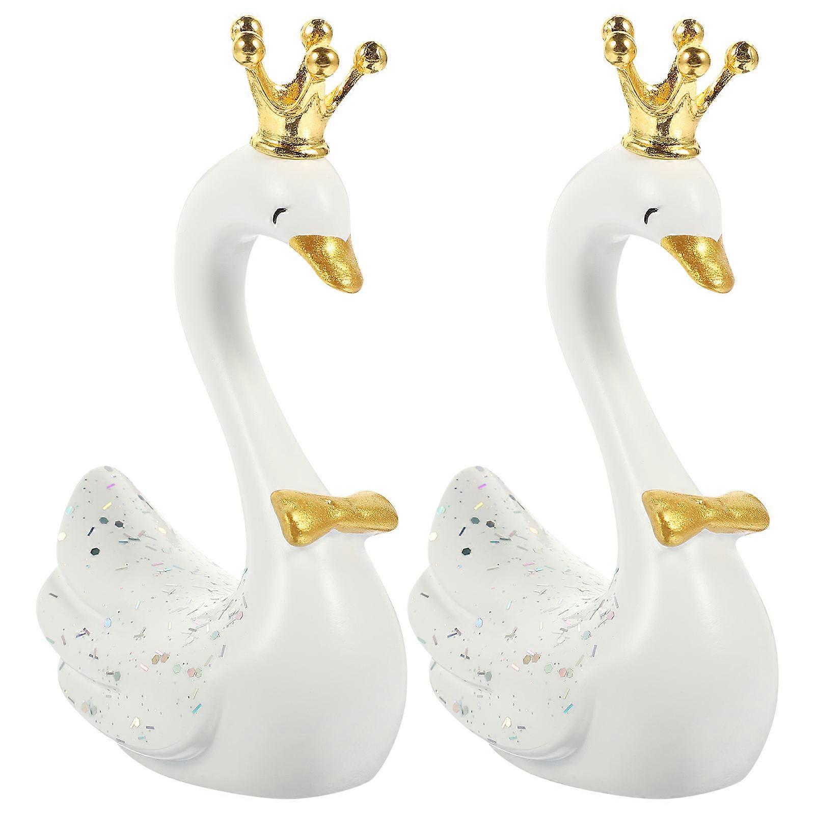 Swan Miniature Statue Resin Cupcake Toppers for Decoration 6Pcs White