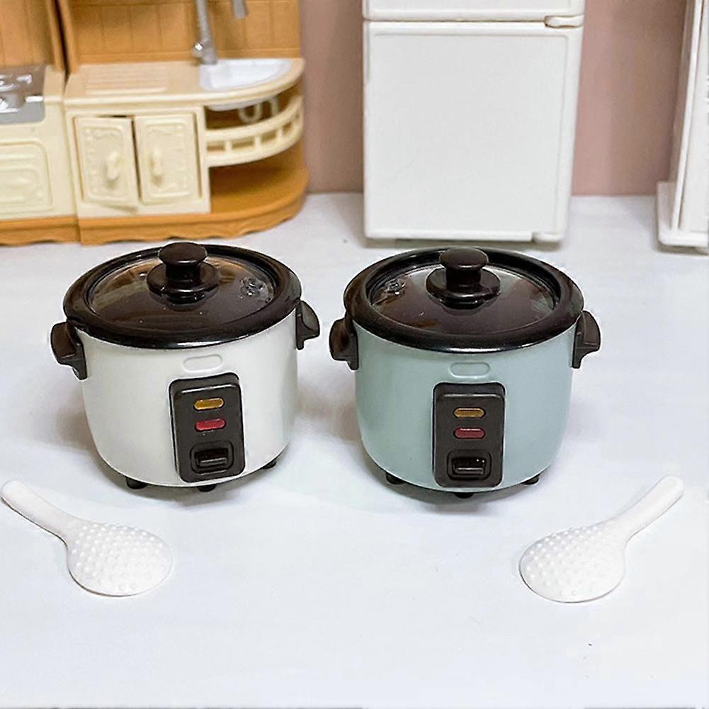 White (A)$Miniature Rice Cooker Model Dollhouse Mini Kitchen Food Toy 1:12 Pretend House Rice Cooker with Rice Spoon