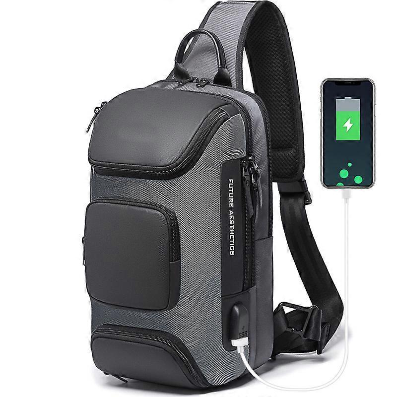 Anti-Theft Sling Bag Men's Chest Bag Crossbody Backpack Waterproof Shoulder Bag Work Travel Hiking with USB (Black 35cm)