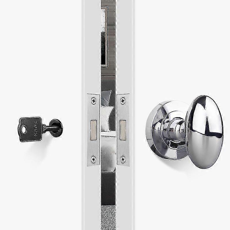 Invisible Door Lock Single-sided Lock Indoor Suitable For Bedroom Door Dark Lock Wooden Door Background Wall Spherical, Bright Silver With Key