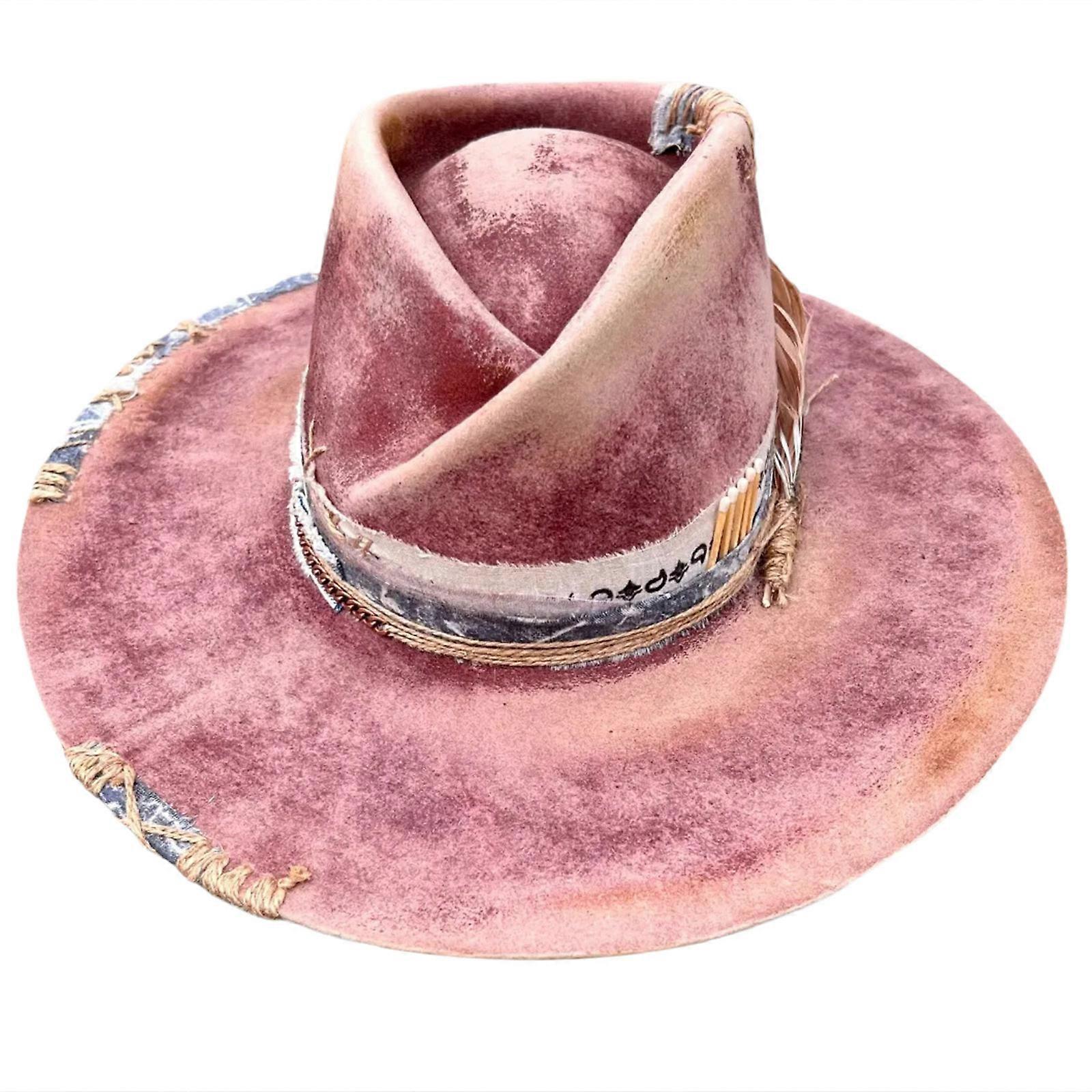 Eye Catching Western Hat Cosplay Costume Hat Theme Party Props Hat Halloween Costume Woven Belt Hat for Evening Party Pink
