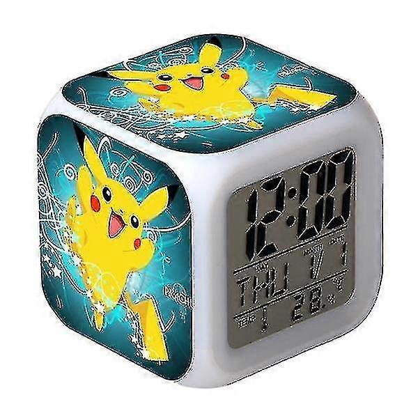 Alarm Clocks, Pikachu Night Light Kids Alarm Clocks With 3 Sided Pikachu Pattern&7 Kinds Of Led Glowing Wake Up Bedside Clock Gifts compatible with Be
