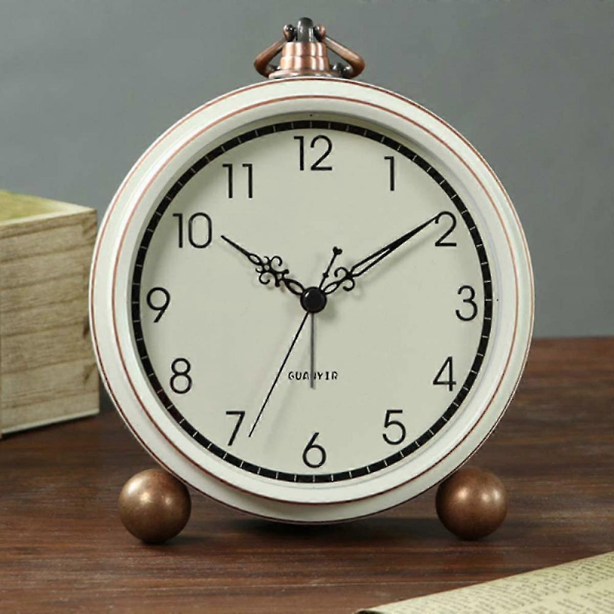 Alarm Clock, Retro Non-ticking Table Clock Battery Operated Small Alarm Clock With Quartz Analog, Desk Clock For Bedrooms Living Room Decor (white)