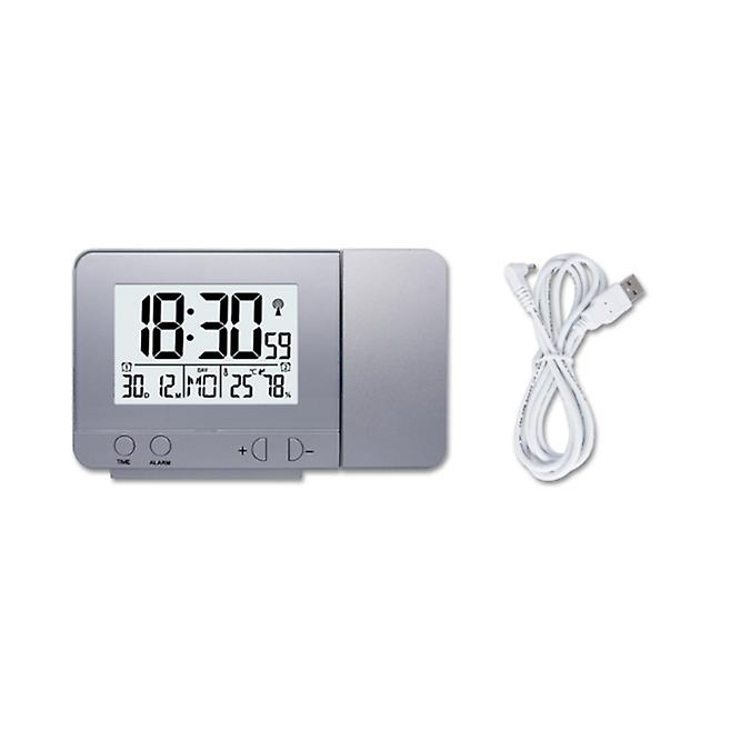 Alarm Clock With Time Temperature Projection Usb Charging Silver Alarm Clocks & Clock Radios
