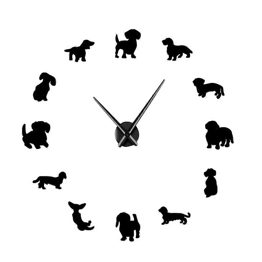 DIY Dachshund Wall Art Wiener Dog Puppy Frameless Giant Clock With Mirror Effect Feature: The wall clock is with 3D effect; DIY distance from digits,DIY shape of the digits; Wall sticker is easy to install and remove; Can be used for gifts, crafts, business gifts, holiday gifts, promotion gifts, home decoration; Suitable for smooth walls of living room, kids bedroom, dining room, kitchen, office, bathroom, coffee shop, hall, etc. Specification: Type: Wall Clocks Combination: Separates Body Material: Plastic Material: Acrylic DIY diameter :about 50~100cm Size:The hour hand: 31cm/ 12.4,Minute hand: 39cm/ 15.3,Inner Clock: 12cm / 4.9" Feature: Antique Style Display Type: Needle Motivity Type: Quartz Form: Single Face Shape: Geometric Colour:Black,Sliver,Gold Brand Name: The Vinyl Clock Wall Clock Type: DIY Giant Wall Clock Power: 1 x Number 5 battery (not included) Package Contents: 1x Wall Clock