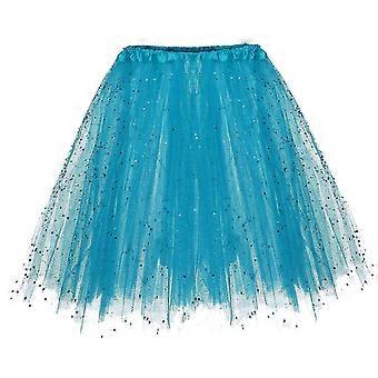 Tutu Skirt Women's Teens Classic Elastic 3 Layered Tulle Ballet Skirt Adult Size--Blue