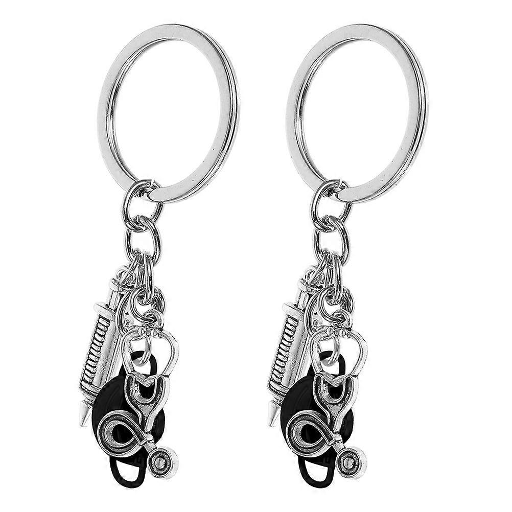 Nurse Key Ring Unique Design For Healthcare Coworkers Black Zinc Alloy 2Pcs