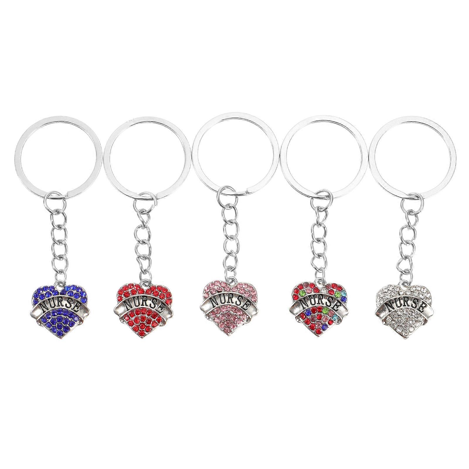 5Pcs Nurse Day Heart Shaped Keyrings For Nurses Assorted Color Gift Pendant Decoration