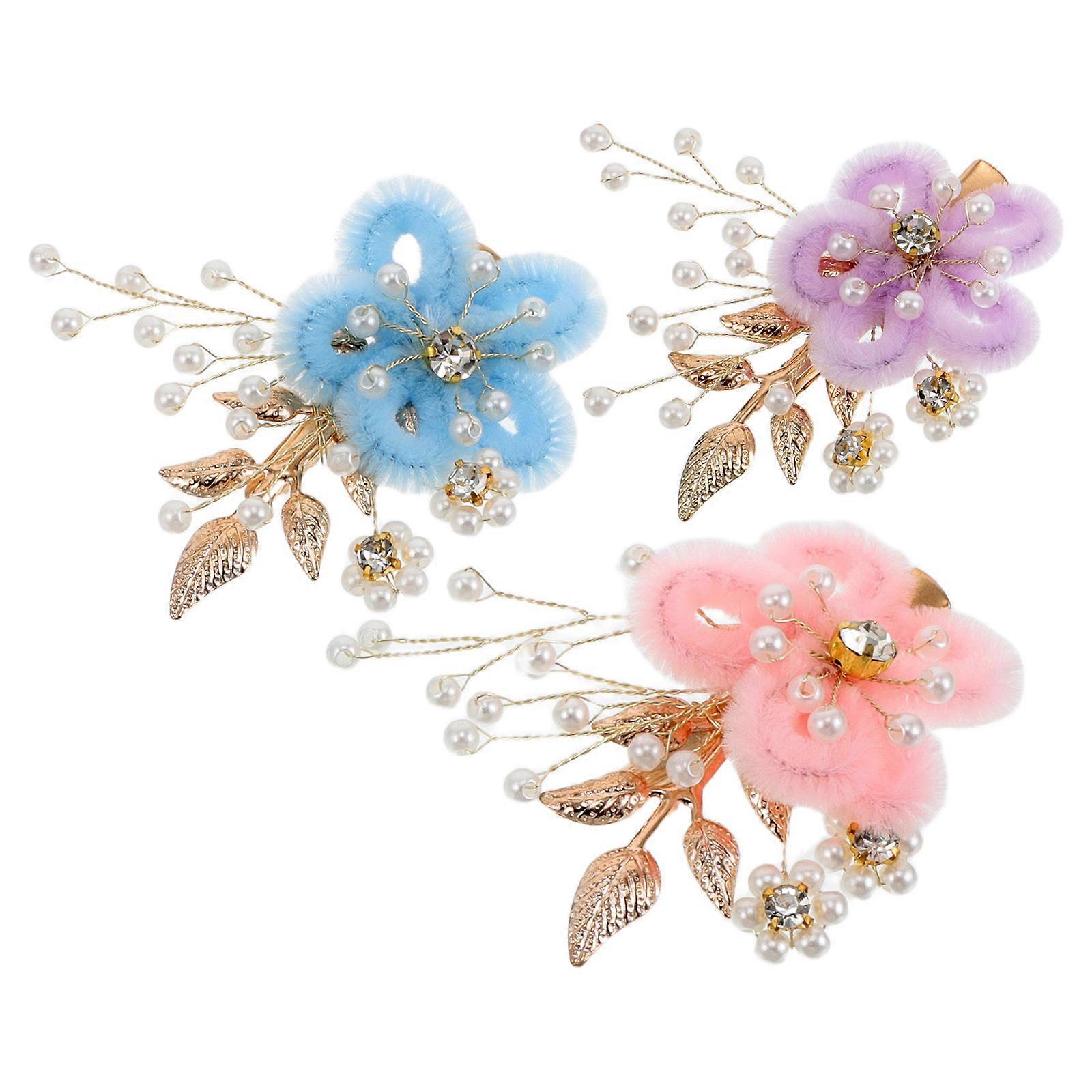 Plush Flower Bridal Hair Clips with Pearl & Leaf Design Elegant Hairpins for Women, Secure Hold for Weddings & Bridesmaids Stylish Hair Accessories