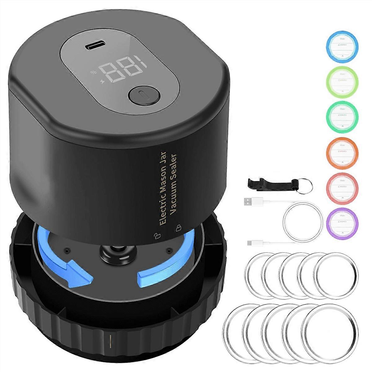 Versatile and Efficient: The Mason Jar Sealer is designed to fit different sizes of jar lids, making it suitable for both wide-mouth and regular-mouth jars. With its two-in-one design, this electric mason jar vacuum sealer kit can quickly and easily seal any regular or wide-mouth jar without the need for additional accessories. Preserve Freshness in Seconds: With the Mason Jar Sealer, you can keep your food clean and fresh in just . By creating a vacuum seal, this sealer effectively removes air from the jars, preventing the growth of and extending the shelf life of your stored food items. User-friendly Design: This electric mason jar vacuum sealer features a LED digital screen that displays the vacuum time and battery level, providing you with real-time information. Its simple and convenient operation eliminates the need for complicated and bulky traditional sealers. Plus, it can be easily via USB, boasting a large battery capacity and low power consumption. and Reliable: Made of high-quality plastics, the Mason Jar Sealer is built to last. Its sturdy construction ensures durability and , allowing you to use it for sealing jars for a long time. Say goodbye to flimsy and ineffective sealing methods, and enjoy the peace of mind that comes with a reliable vacuum sealer. : Includes an electric vacuum sealer with a wide mouth sealer, a standard mouth seal converter, 5 wide mouth mason jar lids and 5 regular mouth mason jar lids, type-c charging cable (Package comes with 3 free food stickers to easier to categorize your food) Colour:Black Material:ABS Package Contents: 1 x electric vacuum sealer 5 x Regular mouth canning lids 5 x Wide mouth canning lids 1 x Bottle top opener 1 x Type-C charging cable 3 x food stickers Only the above package content, other products are not included. Note: Light reflection and different displays may cause the color of the item in the picture a little different from the real thing. The measurement allowed error is +/- 1-3cm. Versatile and Efficient: The Mason Jar Sealer is designed to fit different sizes of jar lids, making it suitable for both wide-mouth and regular-mouth jars. With its two-in-one design, this electric mason jar vacuum sealer kit can quickly and easily seal any regular or wide-mouth jar without the need for additional accessories. Preserve Freshness in Seconds: With the Mason Jar Sealer, you can keep your food clean and fresh in just . By creating a vacuum seal, this sealer effectively removes air from the jars, preventing the growth of and extending the shelf life of your stored food items. User-friendly Design: This electric mason jar vacuum sealer features a LED digital screen that displays the vacuum time and battery level, providing you with real-time information. Its simple and convenient operation eliminates the need for complicated and bulky traditional sealers. Plus, it can be easily via USB, boasting a large battery capacity and low power consumption. and Reliable: Made of high-quality plastics, the Mason Jar Sealer is built to last. Its sturdy construction ensures durability and , allowing you to use it for sealing jars for a long time. Say goodbye to flimsy and ineffective sealing methods, and enjoy the peace of mind that comes with a reliable vacuum sealer. : Includes an electric vacuum sealer with a wide mouth sealer, a standard mouth seal converter, 5 wide mouth mason jar lids and 5 regular mouth mason jar lids, type-c charging cable (Package comes with 3 free food stickers to easier to categorize your food)