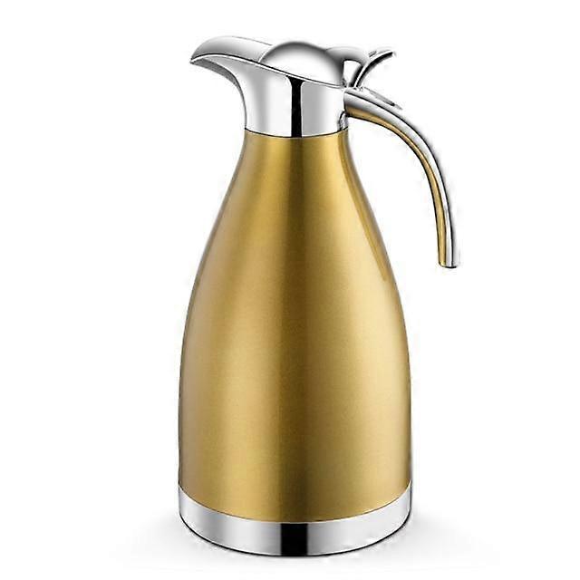 Vacuum Insulation Double Wall Stainless Steel Coffee Pot Milk Tea Jug Water Carafe Flask Thermal Thermos Bottles This pot is made of high quality stainless steel, durable, rust resistant and easy to clean. Vacuum insulation technology and double-wall design help preserve temperature of hot water or cold water. You can operate your coffee pot with a single hand thanks to the one-button push design, convenient to use. Zinc alloy handle is comfortable to hold, sturdy and durable. Perfect for storing and serving coffee, tea, hot chocolate and more. Specification: Condition: 100% Brand New Material: Stainless Steel Color: Gold Capacity: 2L Product Size: 14 * 29.5cm / 5.5 * 11.6 inch