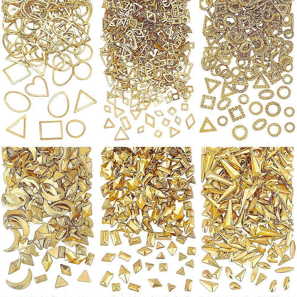 Brass Cabochons Rivets Style Nail Art Decoration Accessories Mixed Shapes Golden 5bags/set