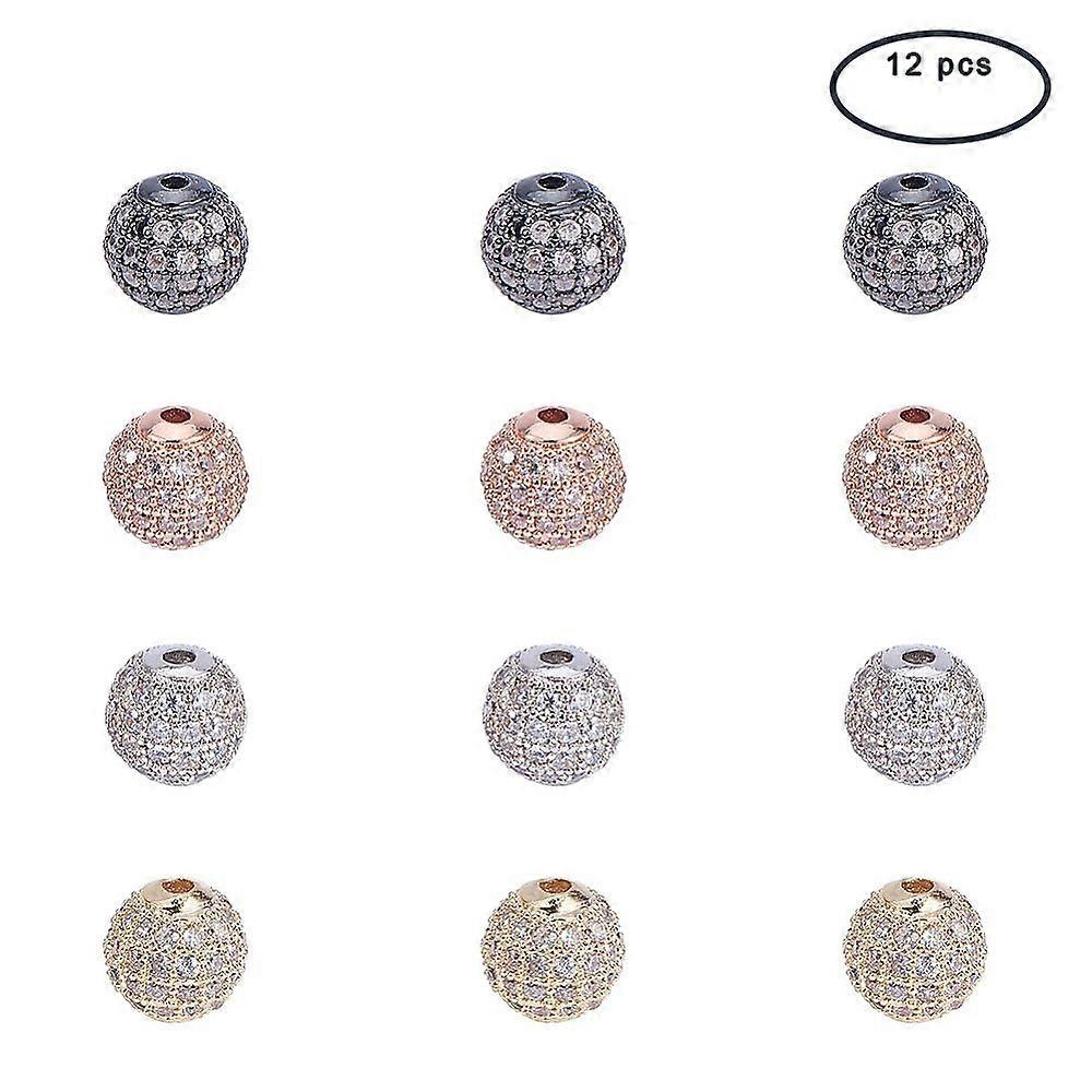 Brass Micro Pave Cubic Zirconia Beads Round Mixed Color 8mm Hole: 2mm 3pcs/color 12pcs/box Packaging Box: 5.4x5.3x2cm