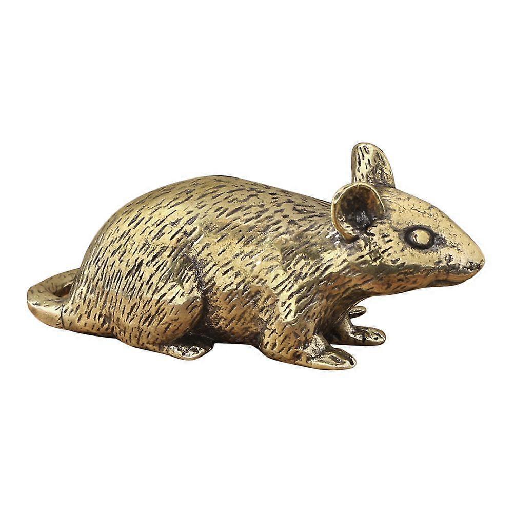 Brass Mini Lucky Rat Statue Vintage Metal Zodiac Animal Ornament Collectible Sculpture for Office Garden Home Desktop Decoration
