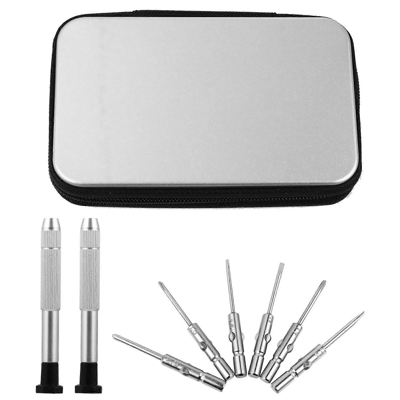 This is an eyeglass repair kit. It is made of quality material, durable to use. Provide multipurpose and handy tool for your electronics, eyeglasses, toy, phone or watch repairing work. Features -Color: Assorted Color -Material: -Size: 8.50X1.20X1.20cm/3.34X0.47X0.47in - This set is an essential tool for the maintenance of household appliances, mobile , watches, toys, etc. - -slip design on the handle allows you to use it easily without worry. - High hardness screwdriver bits, wear-resistant and durable to use. - Comes with a storage bag with easy storage and carry. - Can be given as a present to your family and friend. Package list: 10 x bits 2 x handles