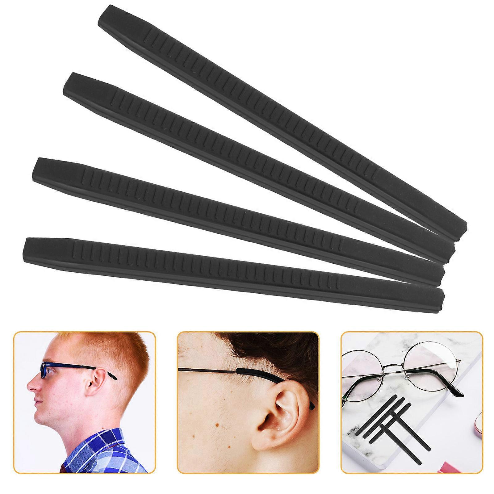 Eyeglass Ear Grips Eyeglass Legs Covers Glasses Leg Sleeves Non-Slip Eyeglass End Tips Black Cylindrical Anti-Slip For People Who Wear Glasses 4 Pairs
