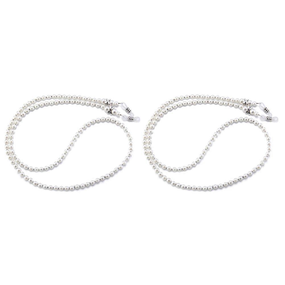 Eyeglass Cord Beaded Eyeglasses Strap Lanyards White 70 x 1 x 0.4cm 2Set