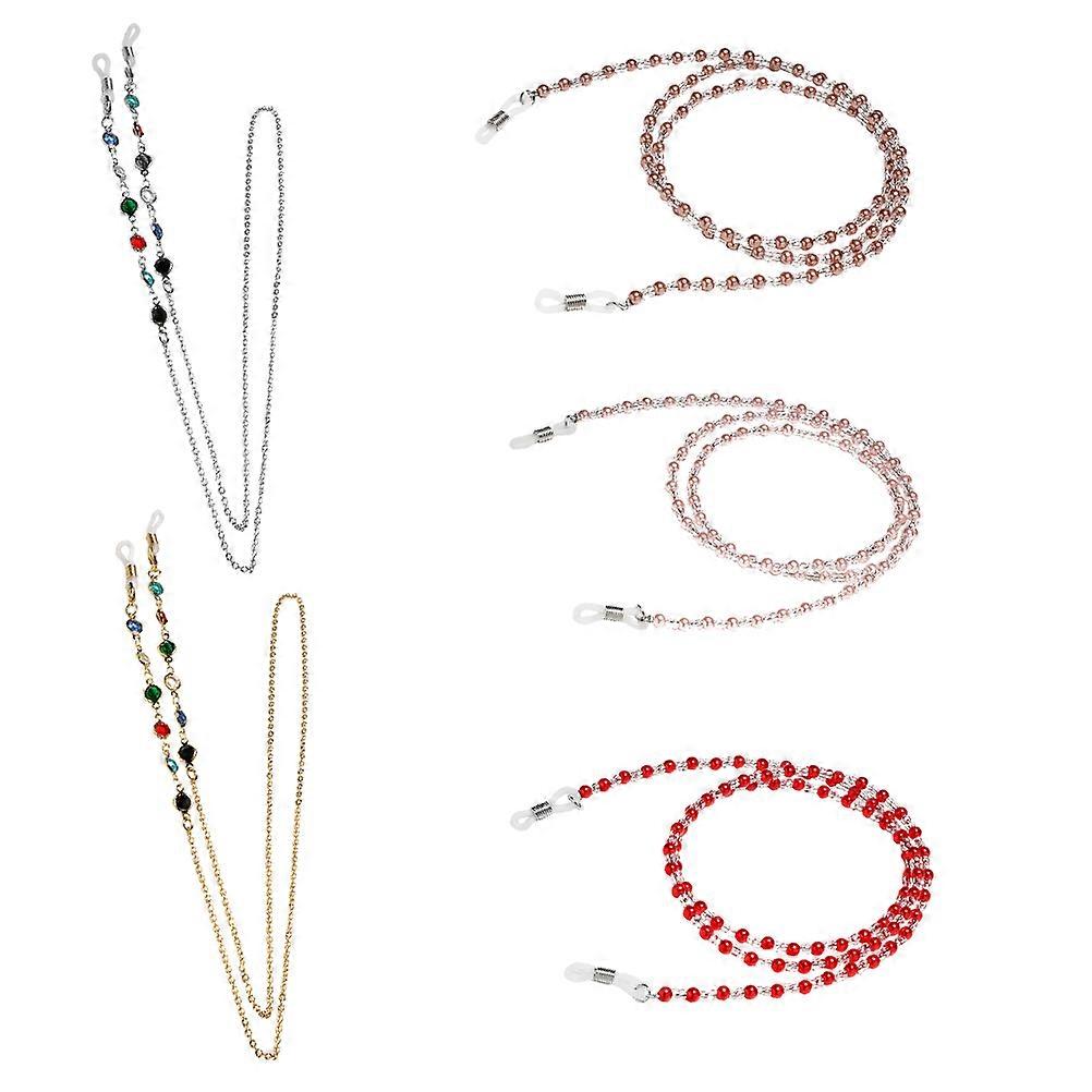 Eyeglasses Straps Eyeglass Beaded Chains Glasses Holder Anti-Slip 75Cm Red 5Pcs