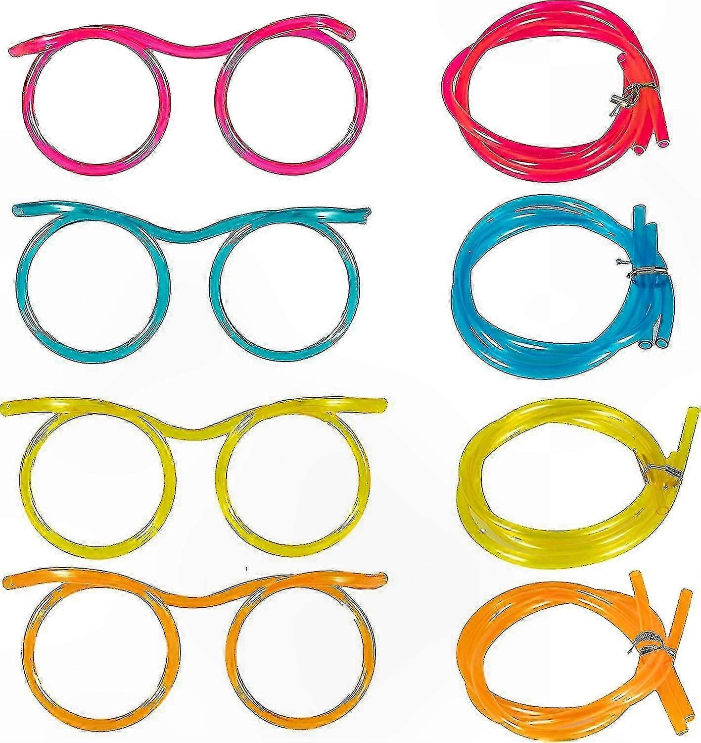 4 Pack Flexible Drinking Straws with Eyeglasses Design, Fun Novelty Party Supplies for Beverages, Soft and Durable Crazy Straws