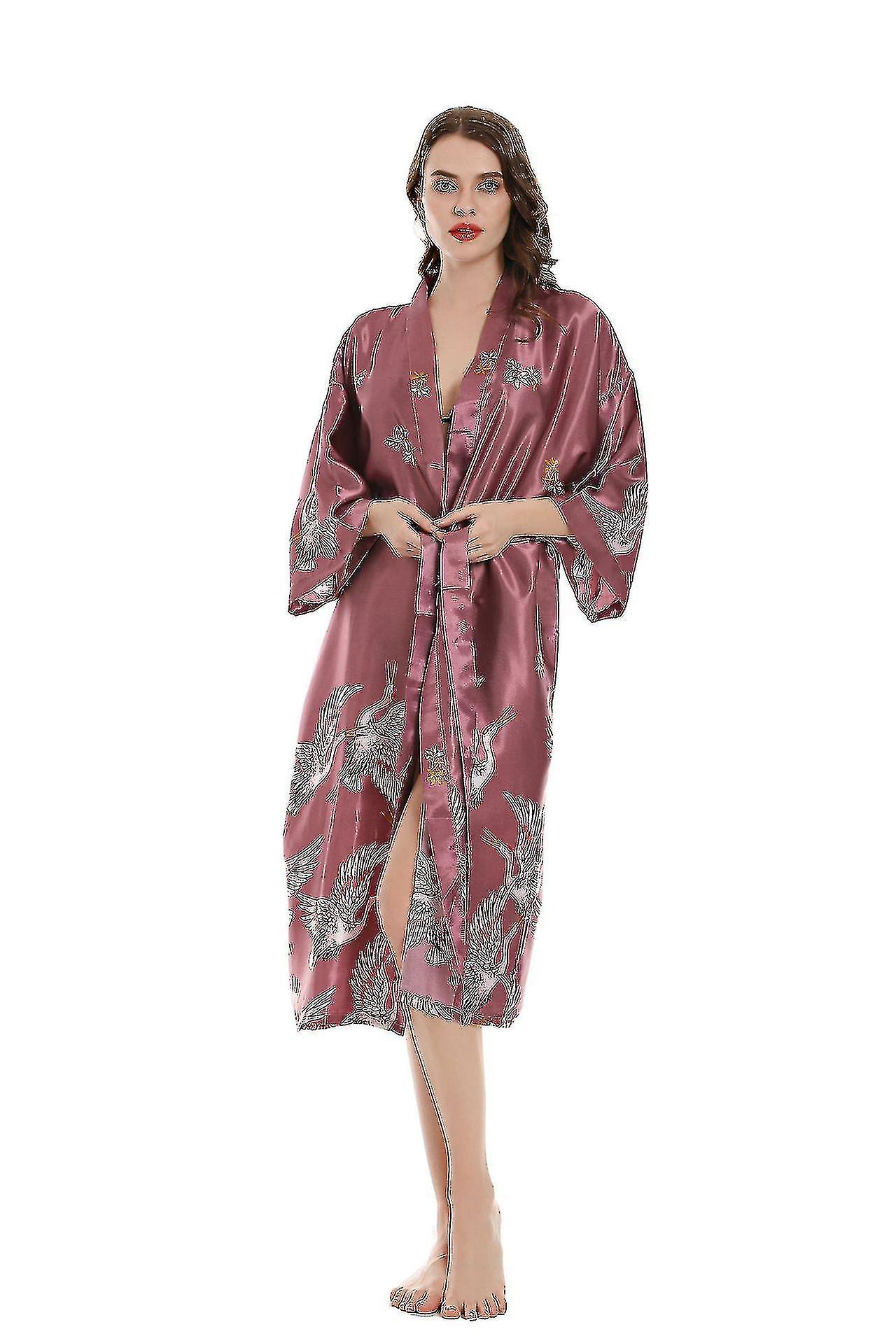 Kimono Robe Satin Sleepwear Blouse Silky Bathrobe Floral Crane Nightgown - JXLGV