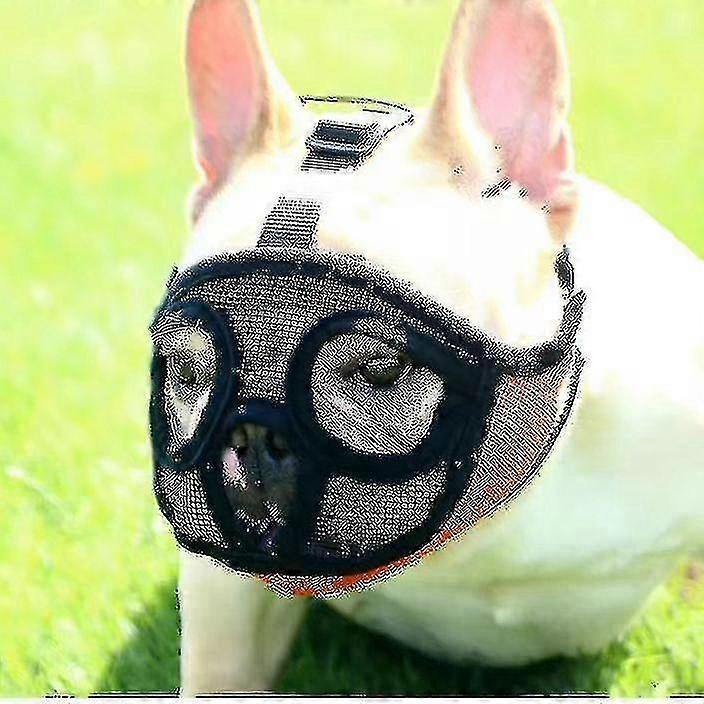 Dog Muzzle With Short Snout Adjustable Breathable Mesh Muzzle For English French Bulldogs Anti-bite Chewing