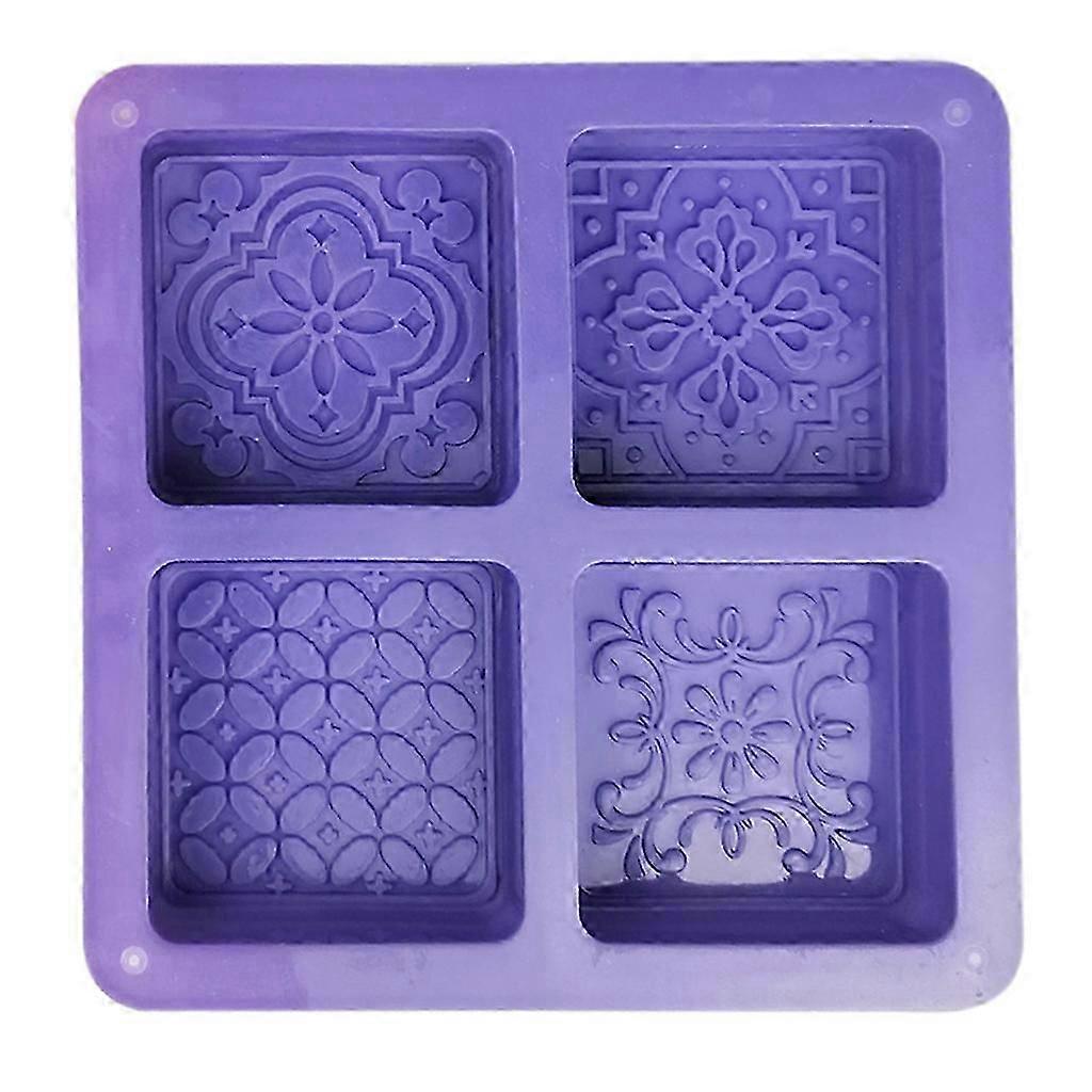Soap Silicone Mold 4 Cavities Square Flower Baking Molds for Soap Candles Jelly