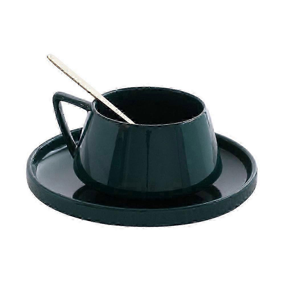 Porcelain Coffee Cups Set, 220ml Green Mugs, Microwavable & Dishwasher Safe, Modern Tea Cups with Saucers