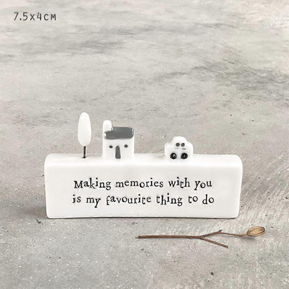 This beautiful boxed porcelain makes a lovely keepsake gift.It comes with the wording Making memories with you is my favourite thing to do The scene measures approx 7.5cm across and 4cm high.