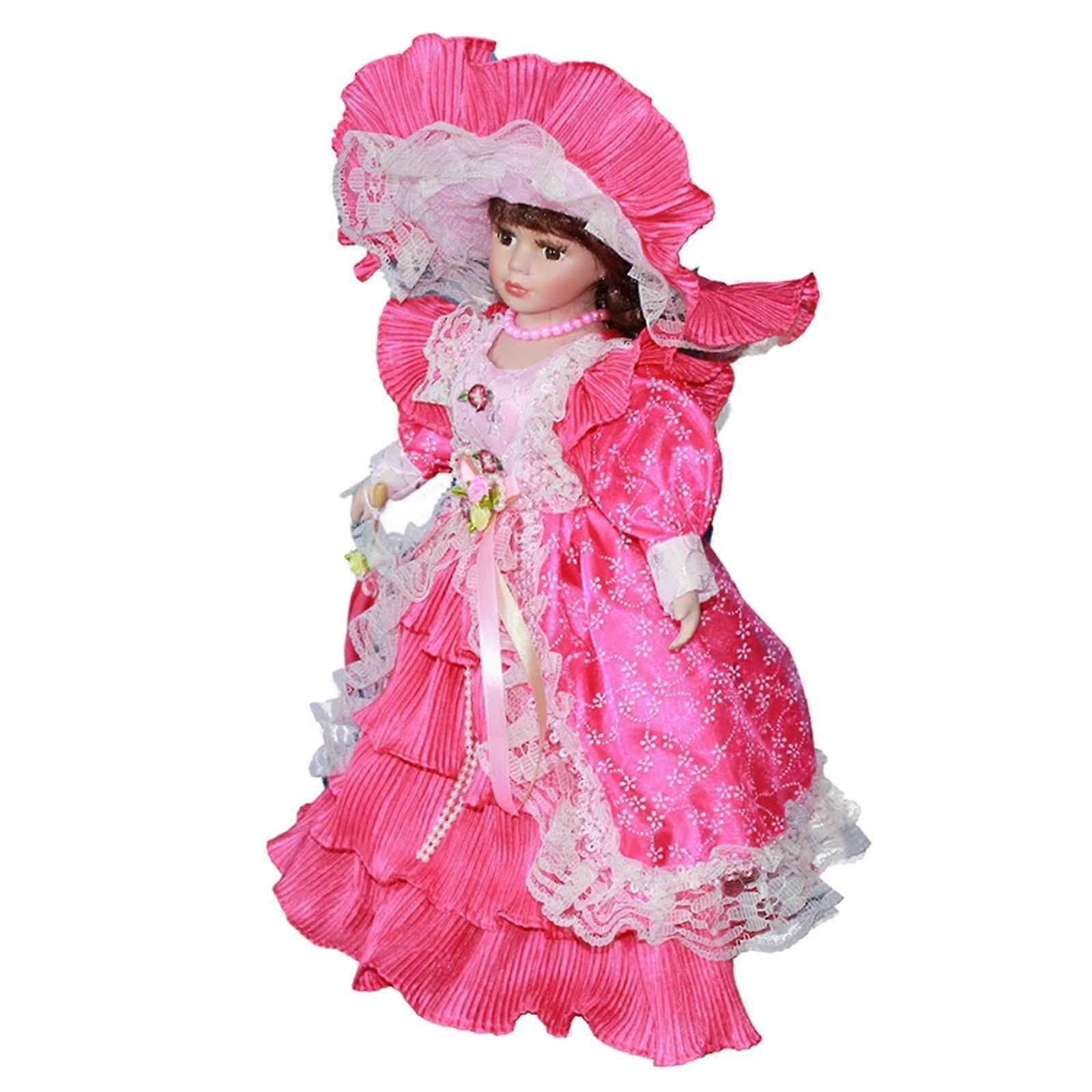 Porcelain Beautiful Woman Elegant Dress Up Porcelain Doll for Decoration Gift Pink