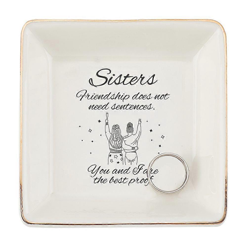Porcelain Square Ring Holder Jewelry Tray for Holding Small Jewelries Rings Necklaces Earrings Bracelets Trinket for Women Girls Birthday Gift Word 10