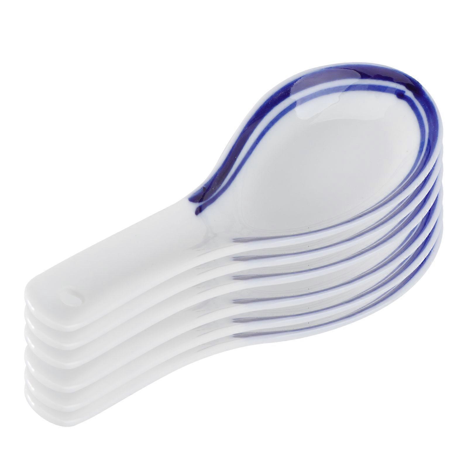 Porcelain Chinese Soup Spoon Ceramic Heat Resistant For Mixing Drinks In Home And Restaurant 5Pcs