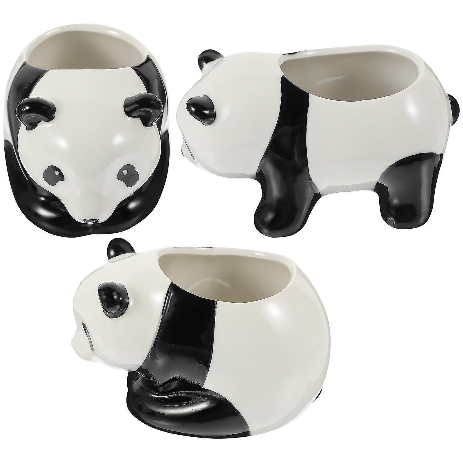 Porcelain Flower Pots Panda Shape Cartoon Garden Decor 3Pcs
