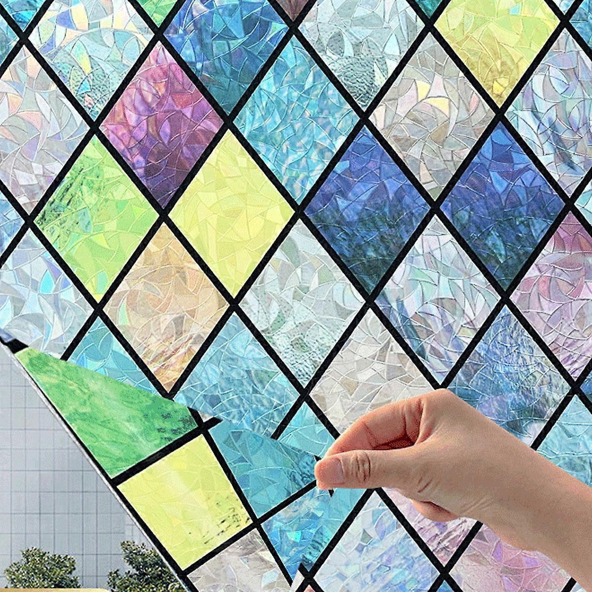 1.Rainbow Creator: This window film is designed with a rainbow effect, which is beautiful, fashionable and decorative, and it will refract the rainbow effect under the light. It decorates your house in a special way 2.Protect your privacy: The window film privacy screen protects you from prying eyes while retaining natural light. It is suitable for living rooms, kitchens, bedrooms and offices 3.UV protection: The opaque window film filters out up to the harmful UV rays, protects our skin from damage and prevents furniture from fading 4. Adhesive-free and reusable film: The self-adhesive glass film is made of materials without adhesive, which makes it more resistant to installation and easy to remove without leaving marks on the glass 5.Easy installation: Cut the stained glass window film to the correct size before installation, spray the window with enough water, peel off the transparent protective film, stick the film on and finally scrape off the air bubbles with a squeegee (don't forget to peel off the protective film before installation)