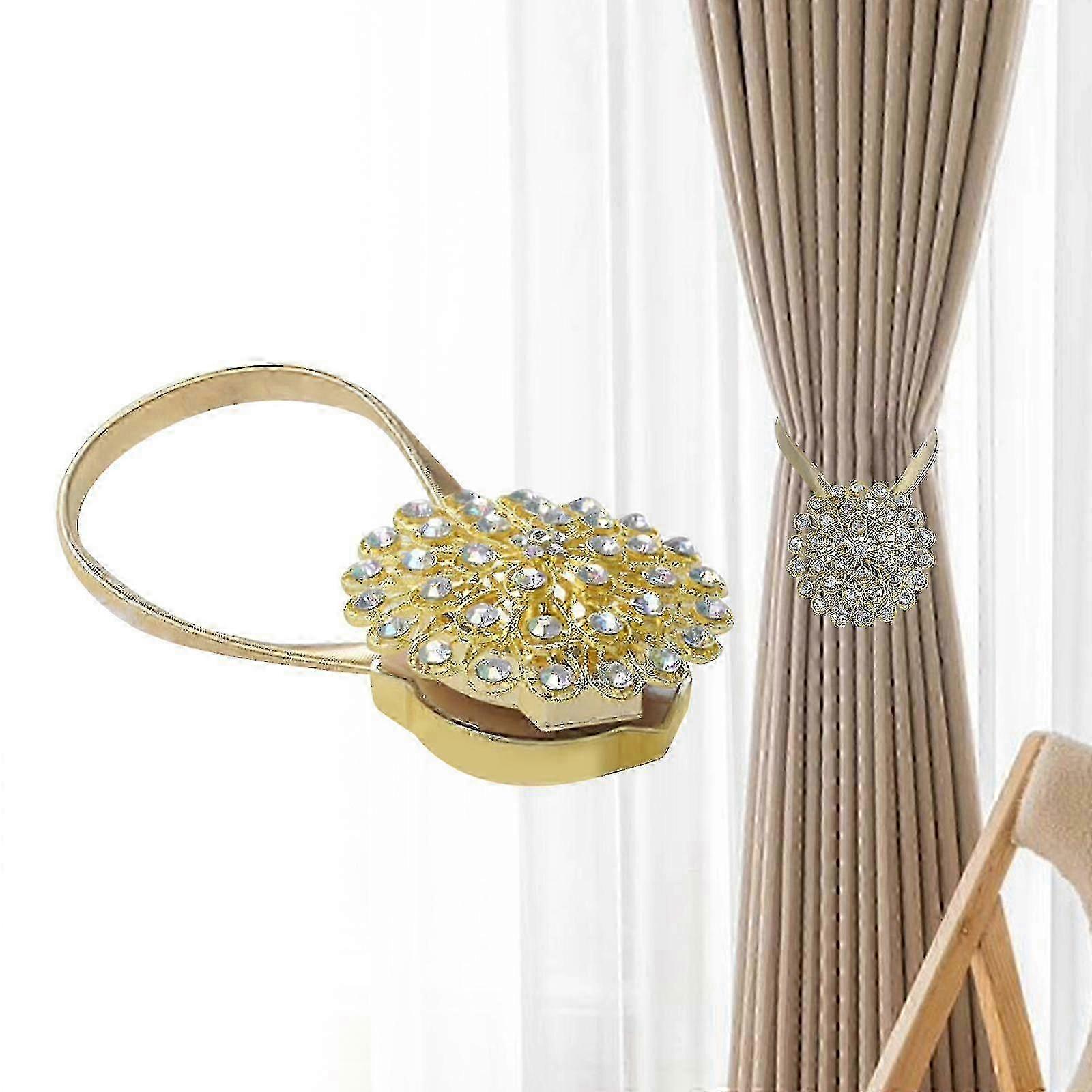 Magnetic Curtain TiebacksThe Peacock rhinestone drapery holdbacks, shine your wall under the sunlight, with elegance.Just Wrap and SnapThe curtain holders will be fixed elegant way with no drill required those curtain holdbacks, are strong and durable so that they will not fall.Unique Design: Inspired by the beauty of a peacocks tail spread, this curtain tieback adds an elegant touch to your window treatments.Convenient Curtain Ties: Do not need a hook, or punch. Magnetic are joined together to hold the curtains in place.ApplicabilityDrapery holdbacks are ideal for bedroom, living room, bathroom, net holder, balcony, patio, and outdoor use. Size Chart: diameter 7.5cm or 2.95inchspring length 30cm or 11.81inchextended 60cm or 23.62inch Package Includes: 1Curtain Holdbacks Note: Please allow slightly errors due to manual measurement and different monitors.