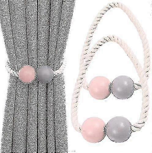 Magnetic Curtain Holders 2 Pack, Wooden Curtain Clips, Pink Window Tiebacks for Home Office Dorm Decor