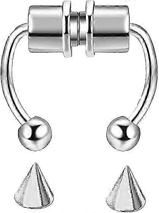 Magnetic Septum Nose Ring Horseshoe Stainless Steel Faux Fake Nose Septum Rings Non-Pierced Clip On Nose Hoop RingsSilver