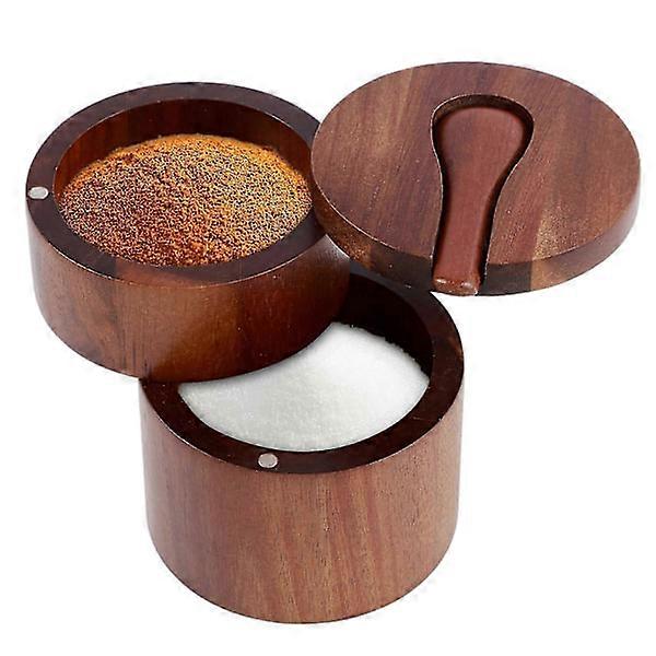 Magnetic Salt/Pepper Shaker - Swivel Lid & Dustproof Acacia Wood Design