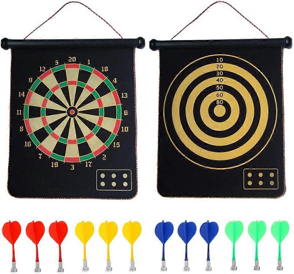 Magnetic Dart Board, Indoor Outdoor Dart Games for Kids with 12pcs Magnetic Darts, Safety Toy Games, Rollup Double Sided Board Game Set for Gifts