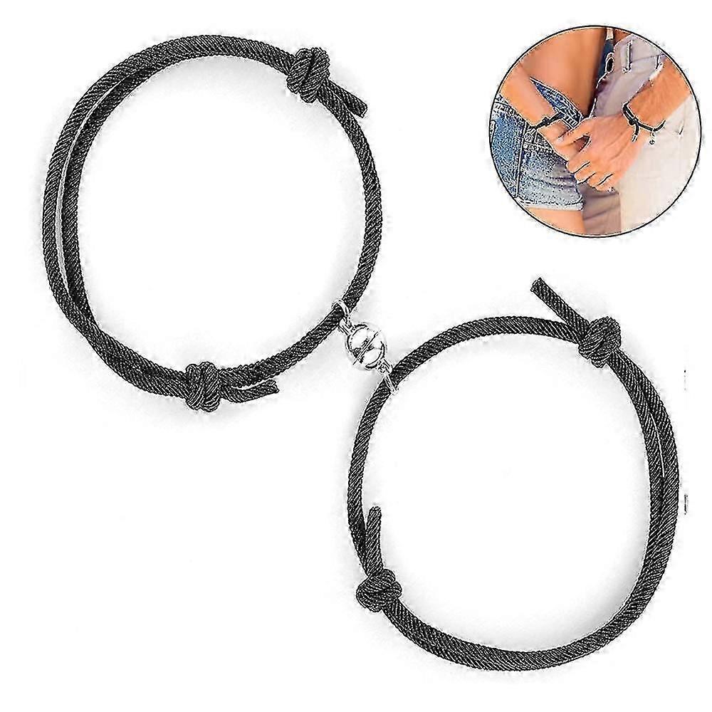couple bracelets with magnetic charm pendants and braided rope design