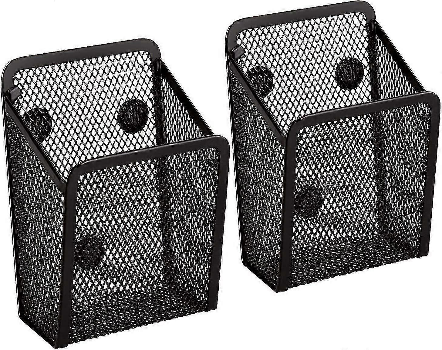 Magnetic Pen Holder 2 Pieces - Mesh Storage Baskets with Strong Magnets for Fridge Storage, Kitchen Organizer, Desk Organizer, Locker Accessories - Bl