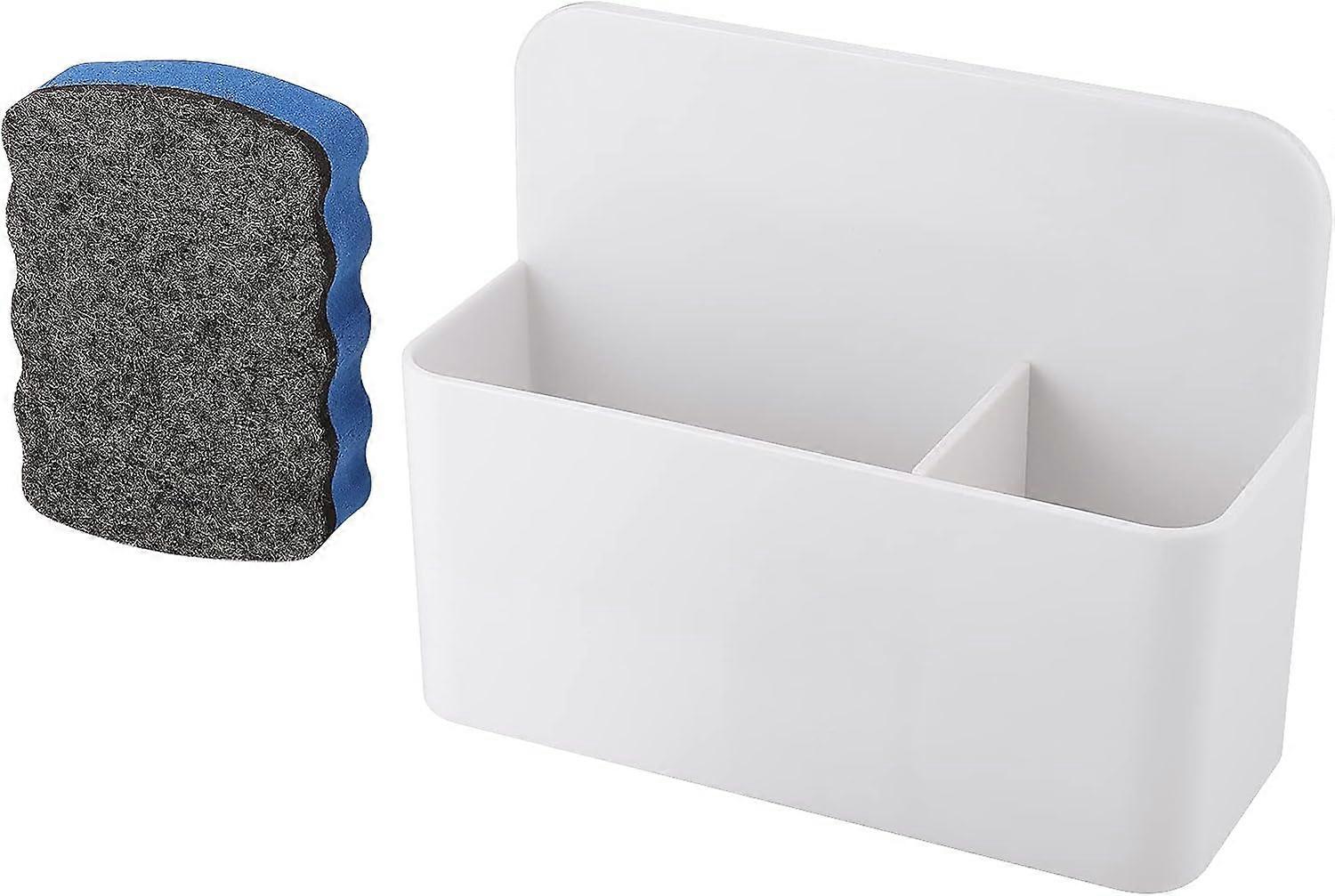 Magnetic Pen Holder with Magnetic Whiteboard Eraser, Adjustable Magnetic Dry Erase Marker Holder and Eraser Organizer (White)