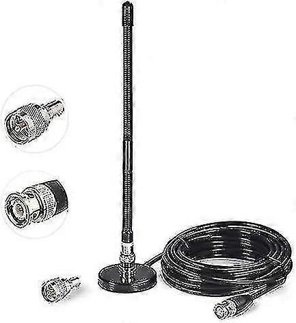 Compatible with all portable CB radios of many brands with BNC connector, improves the quality and range of CB radio reception. The antenna design is soft, flexible and durable, works on all channels in the CB radio frequency range from 26 MHz to 27 MHz. Maximum input power: 10 W; Frequency: 27 MHz; Antenna Mounting Connector Type: BNC Connector; Length: 9.9 inches / 25 cm; Weight: 420 g; Feature: with magnet fu; Cable type: RG58/U coaxial cable; Cable length: 3m / 9.84ft; Cable connection type: BNC connector; Accessory: UHF PL-259 plug adapter;