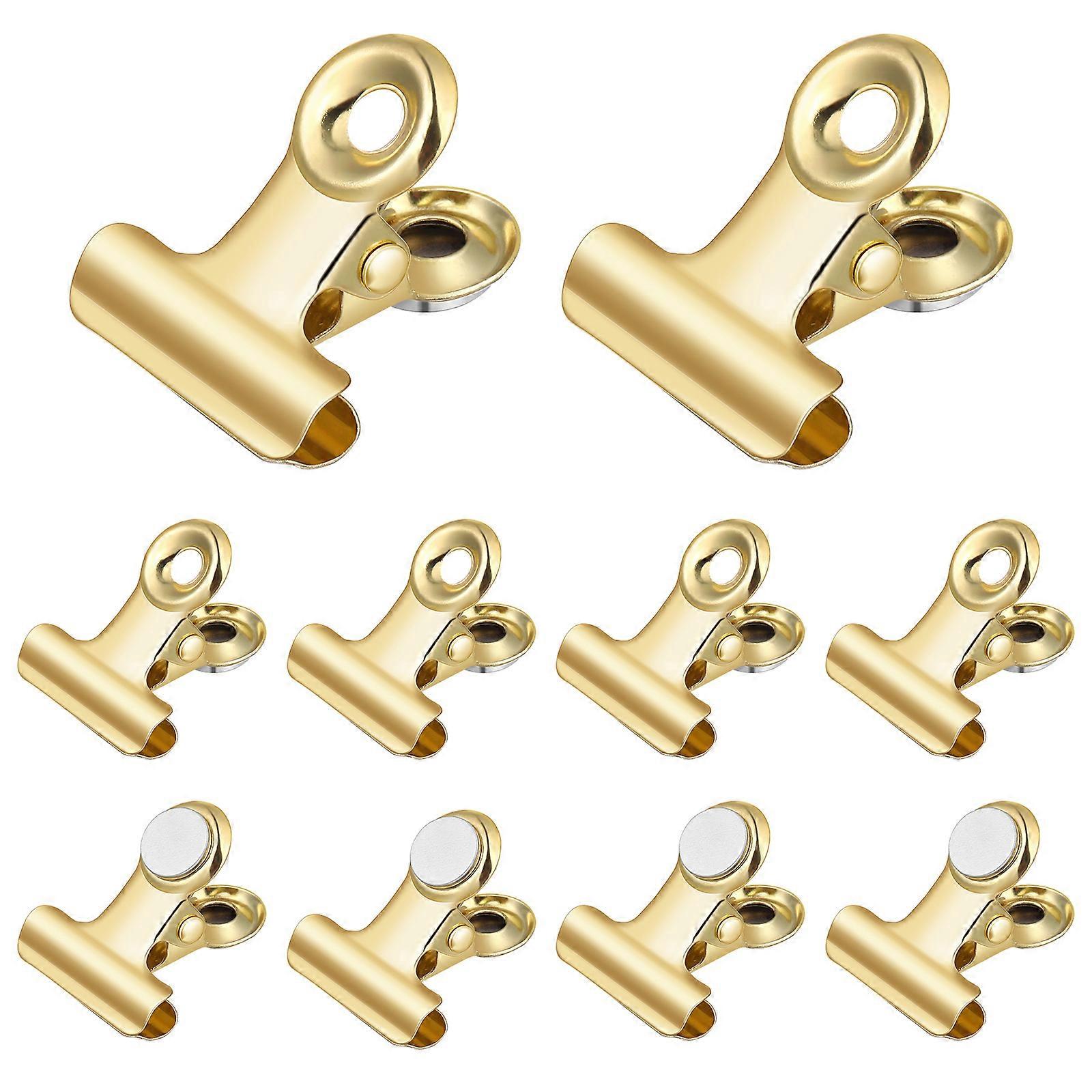 Magnetic Fridge Clips 10 Pcs Memo Holding Magnetic Golden Polished Stainless Steel for Kitchen Office Home