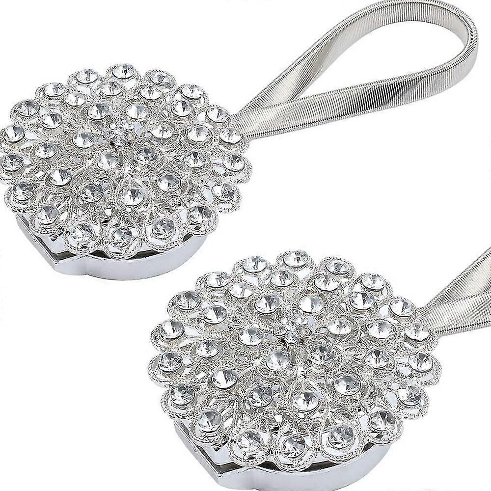 Magnetic Crystal Flower Curtain Tiebacks , Decorative Curtain Holdback Buckle Clips With Stretchable String Rope For Bedroom, Living Room, Offic