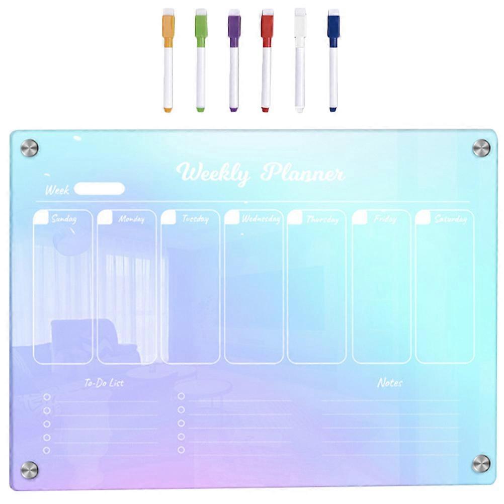 If you have lots of home chores or office duty that haven't done and you can not list them to figure out which one you should . If you lose your mind for those messy works to do. This magnetic planning board can be the best partner and practical tool for you. You will have a nice use experience. Features -Color:Assorted Color -Material:Acrylic -Size:29.70X21.00X0.30cm/11.67X8.25X0.12in -Kitchen writing board is easy to use, small, portable and can be written repeatedly. This planning note allows you to write a daily plan. -By using this magnetic message board, you can easily share schedules, make lists and reminders with your family! -Our magnetic refrigerator daily planner board will help you write all your notes for every style! -Memo Reminders are magnetic and can be magnetically attached to regular refrigerator doors, iron cabinets, etc. Good for present giving. -Refrigerator planning board has plenty of space for notes and this planning board is great for to-do lists and reminders. Package list: 1 x Planning Board 6 x Marker Pens