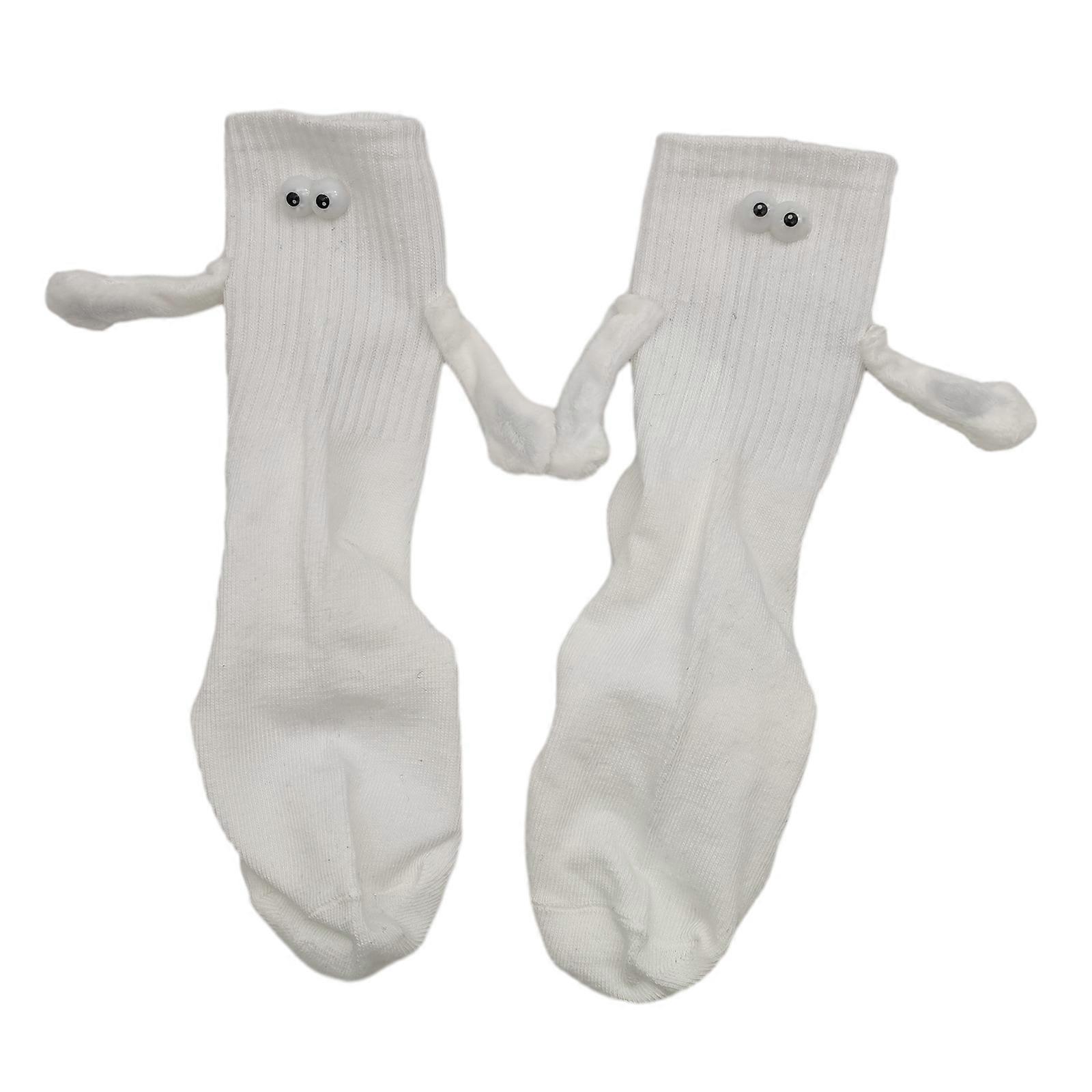 Magnetic 3D Holding Hand Doll Socks Cute Couple Socks Funny Novelty Knee High Sock Relationship Matching Crew Socks Gift White