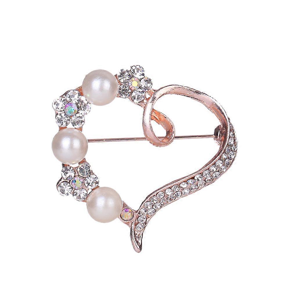 Lapel Pin Anniversary Badge Peach Heart Crystal Rhinestone Stylish Daily Wear Women Decoration 1Pack