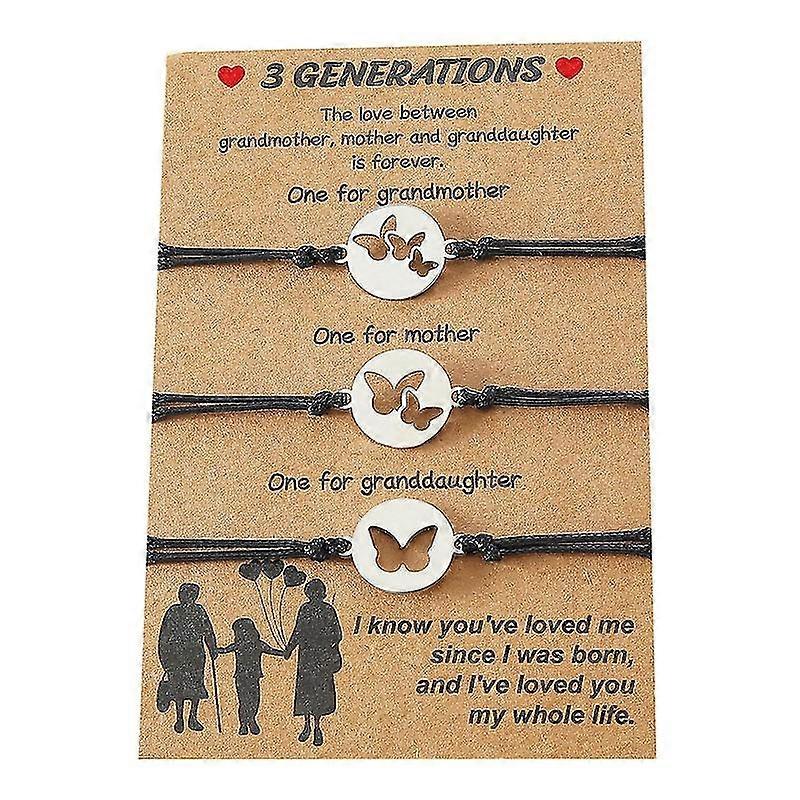 3-piece Set Matching Hollow Butterfly Card Bracelets For Grandmother Mother